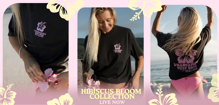 WHANGAMATA SURF SHOP HIBISCUS BLOOM ZIP HOOD - FADED BLACK