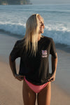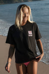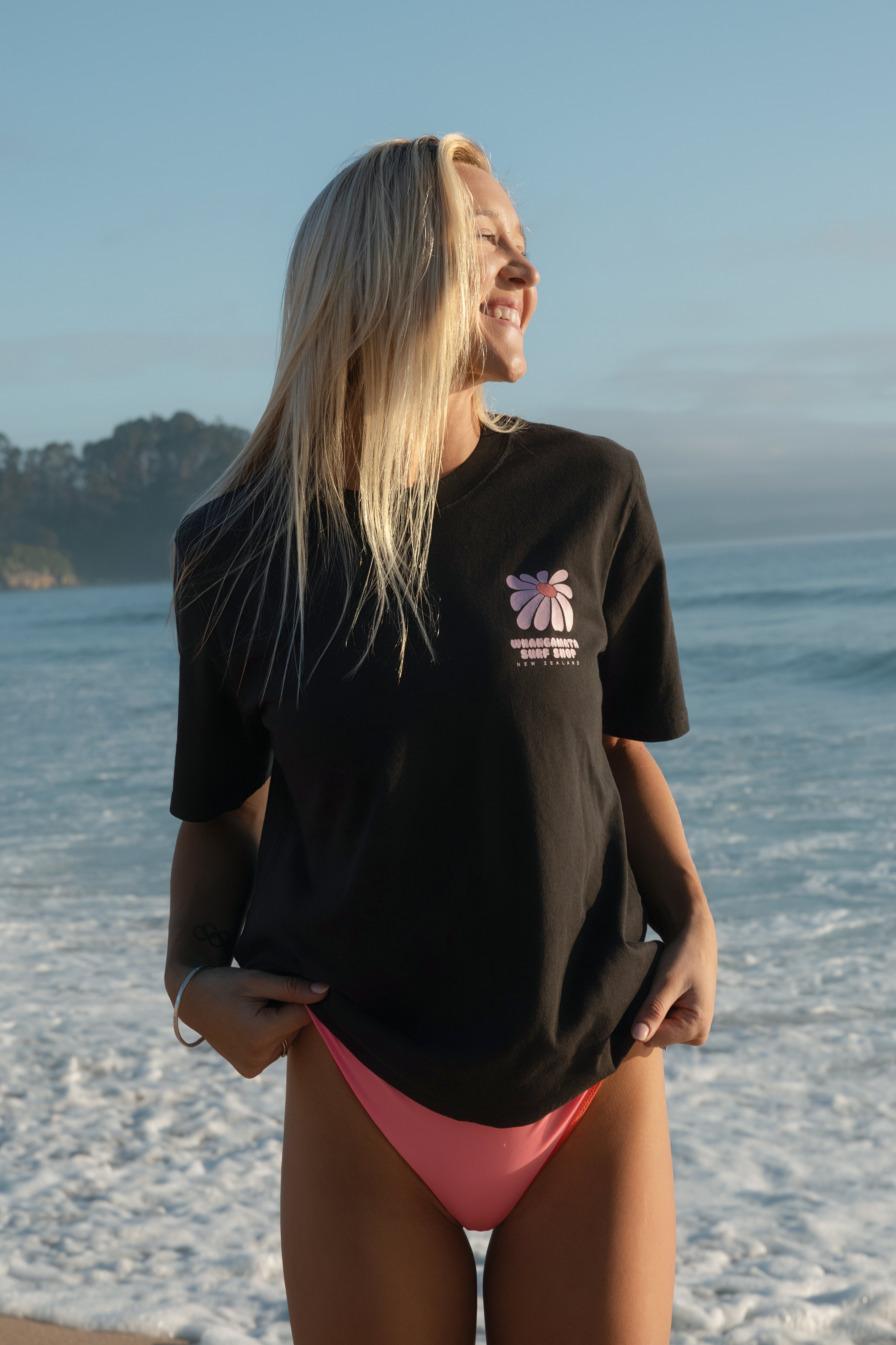 WHANGAMATA SURF SHOP FLOWER HEAVY FAFED TEE - FADED BLACK