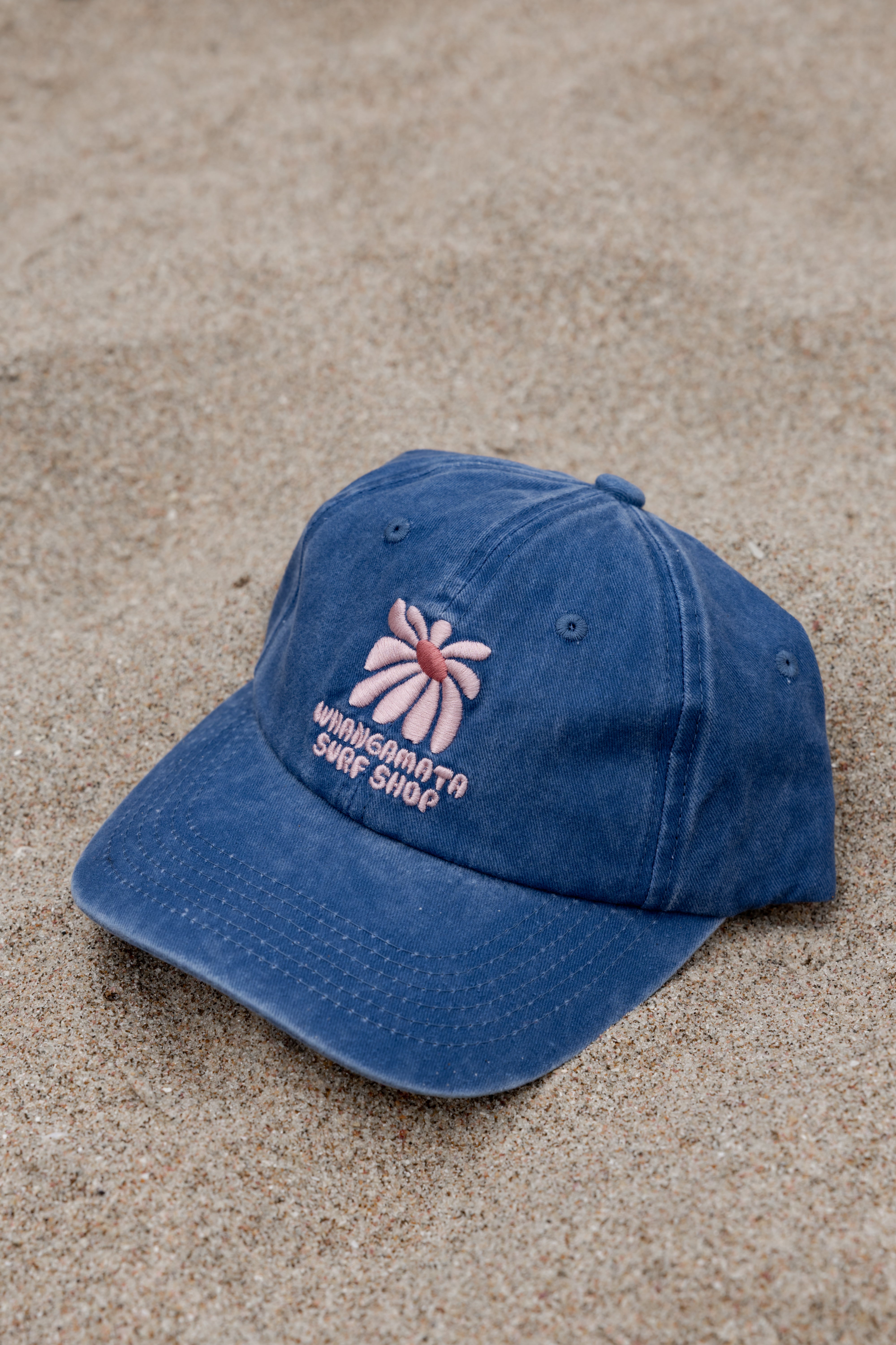 WHANGAMATA SURF SHOP FLOWER LOGO CAP - FADED BLUE