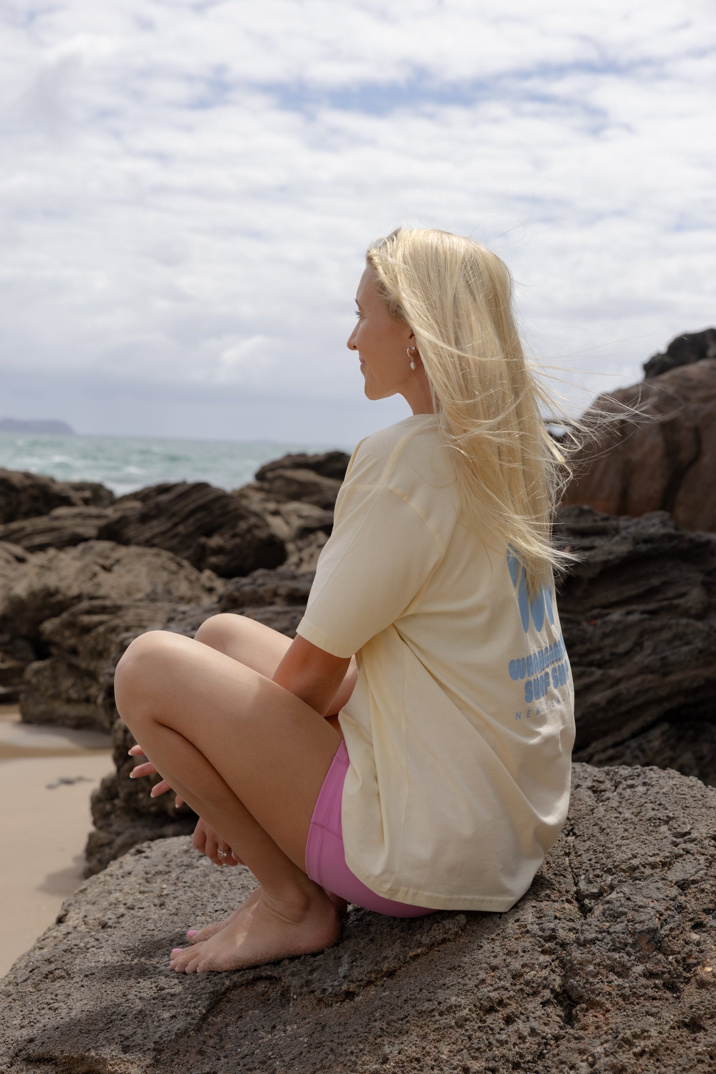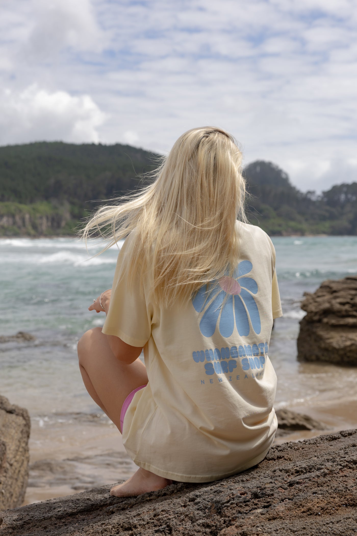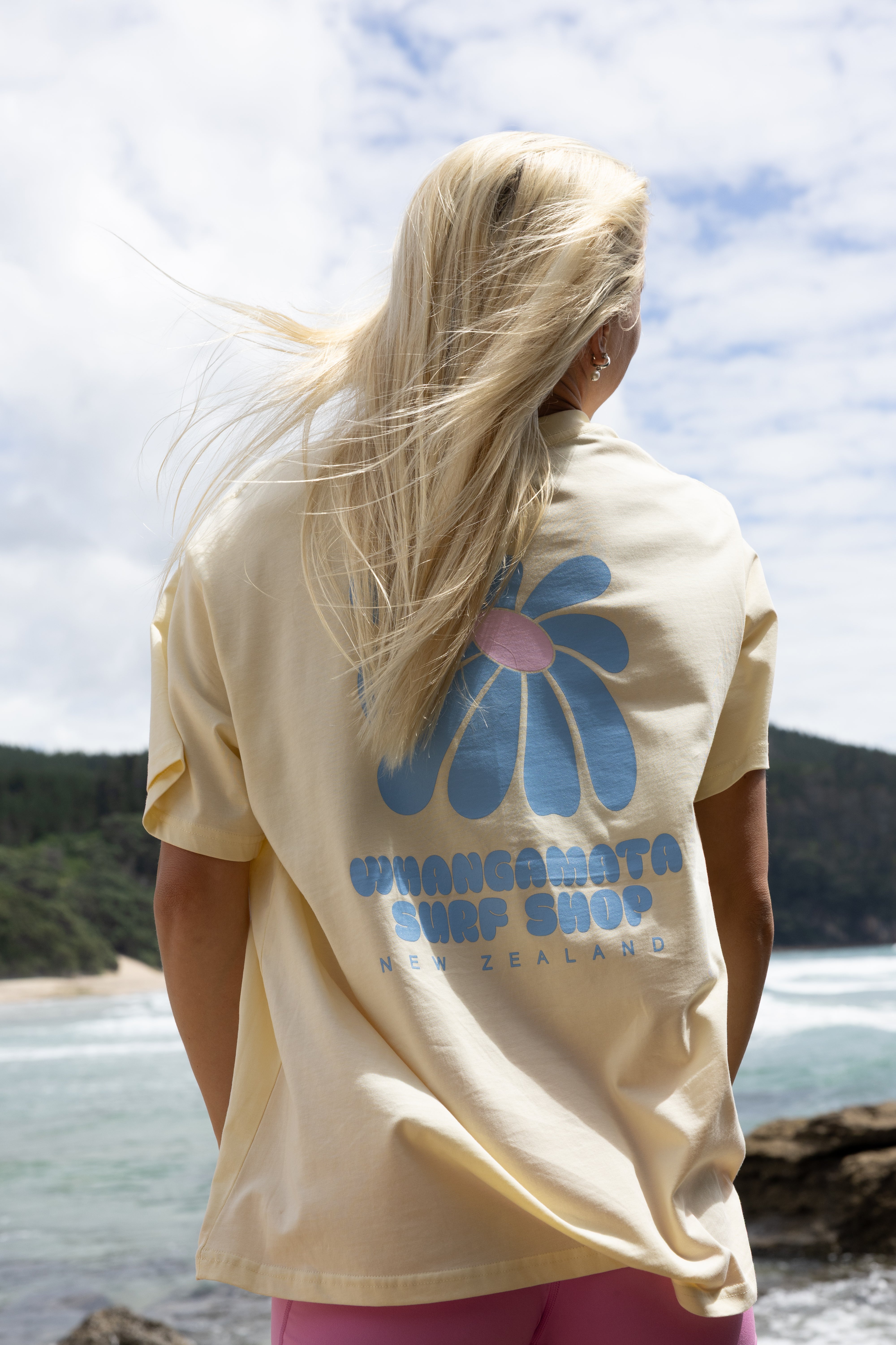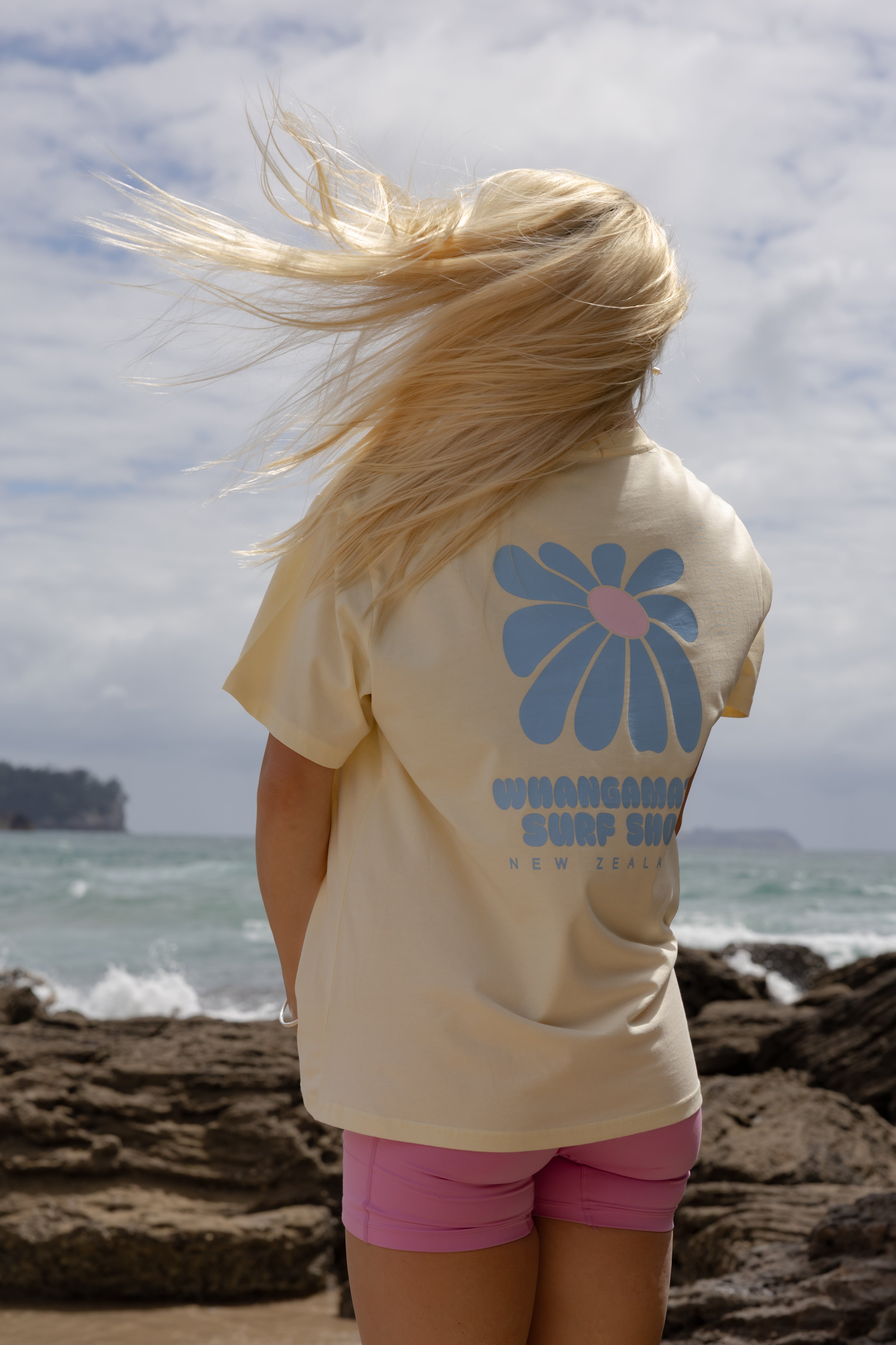 WHANGAMATA SURF SHOP FLOWER TEE - BUTTER