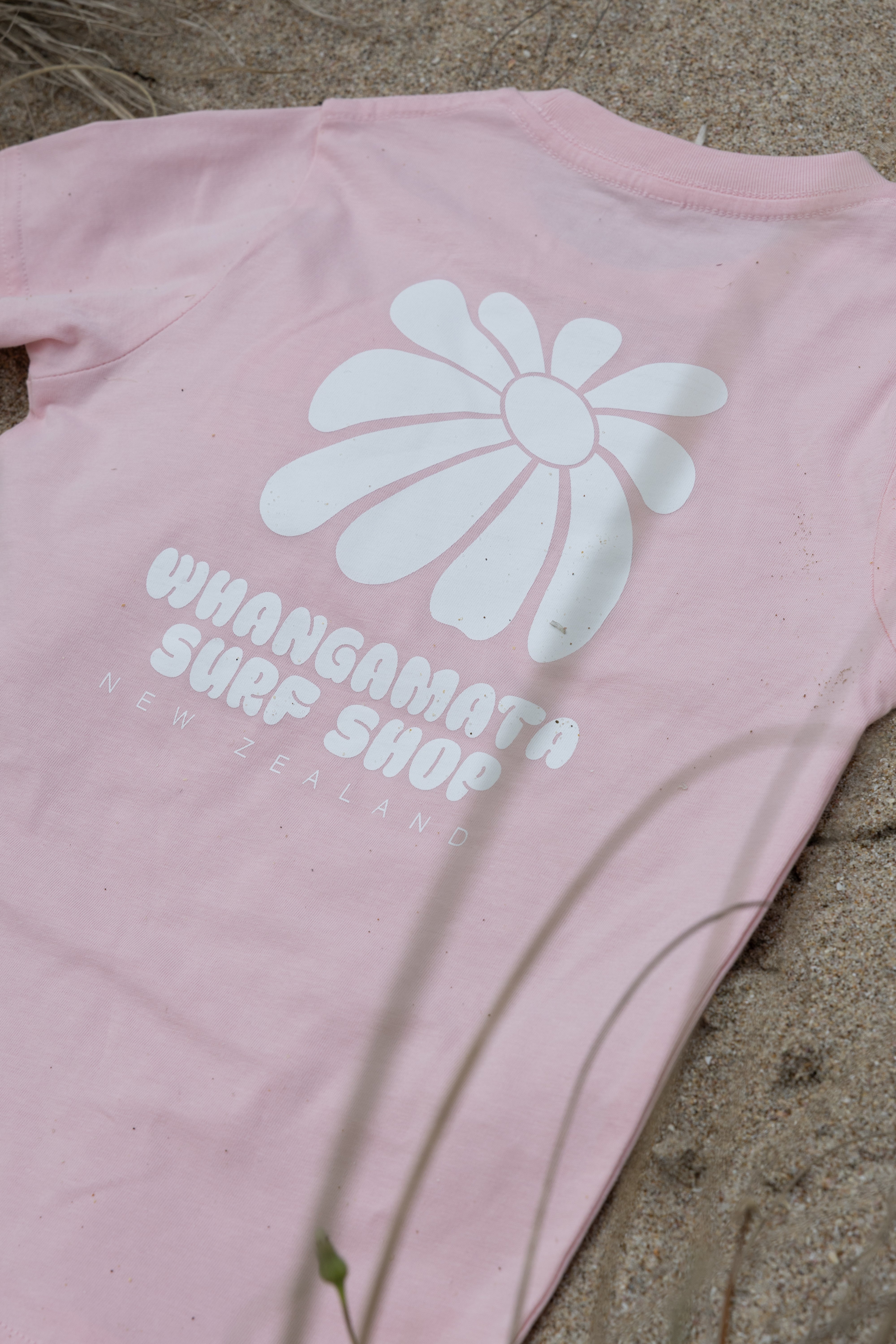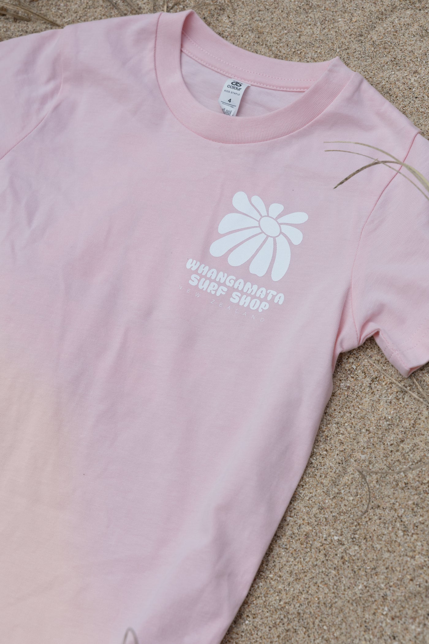 WHANGAMATA SURF SHOP GIRLS FLOWER TEE - PINK