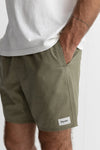 The Classic Linen Jam is a relaxed elastic waist short crafted in durable linen cotton blend mid-weight fabric, this style fits 17" above the knee and features side pockets and a back patch pocket, including an elastic waist with an adjustable drawcord, designed for everyday comfort and wear.
