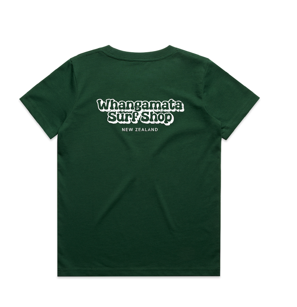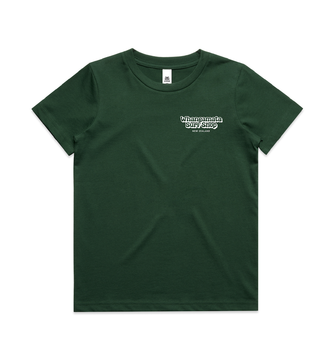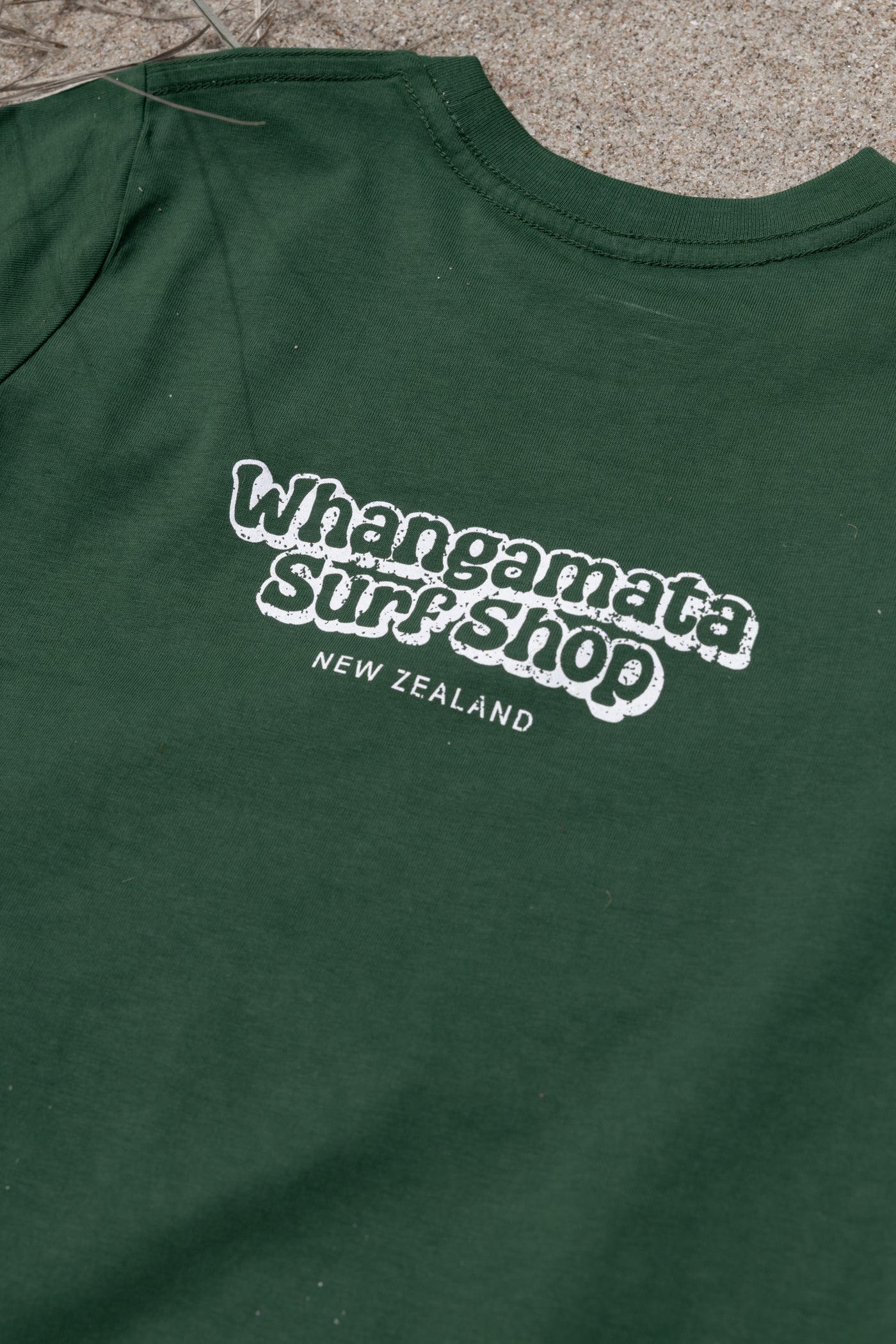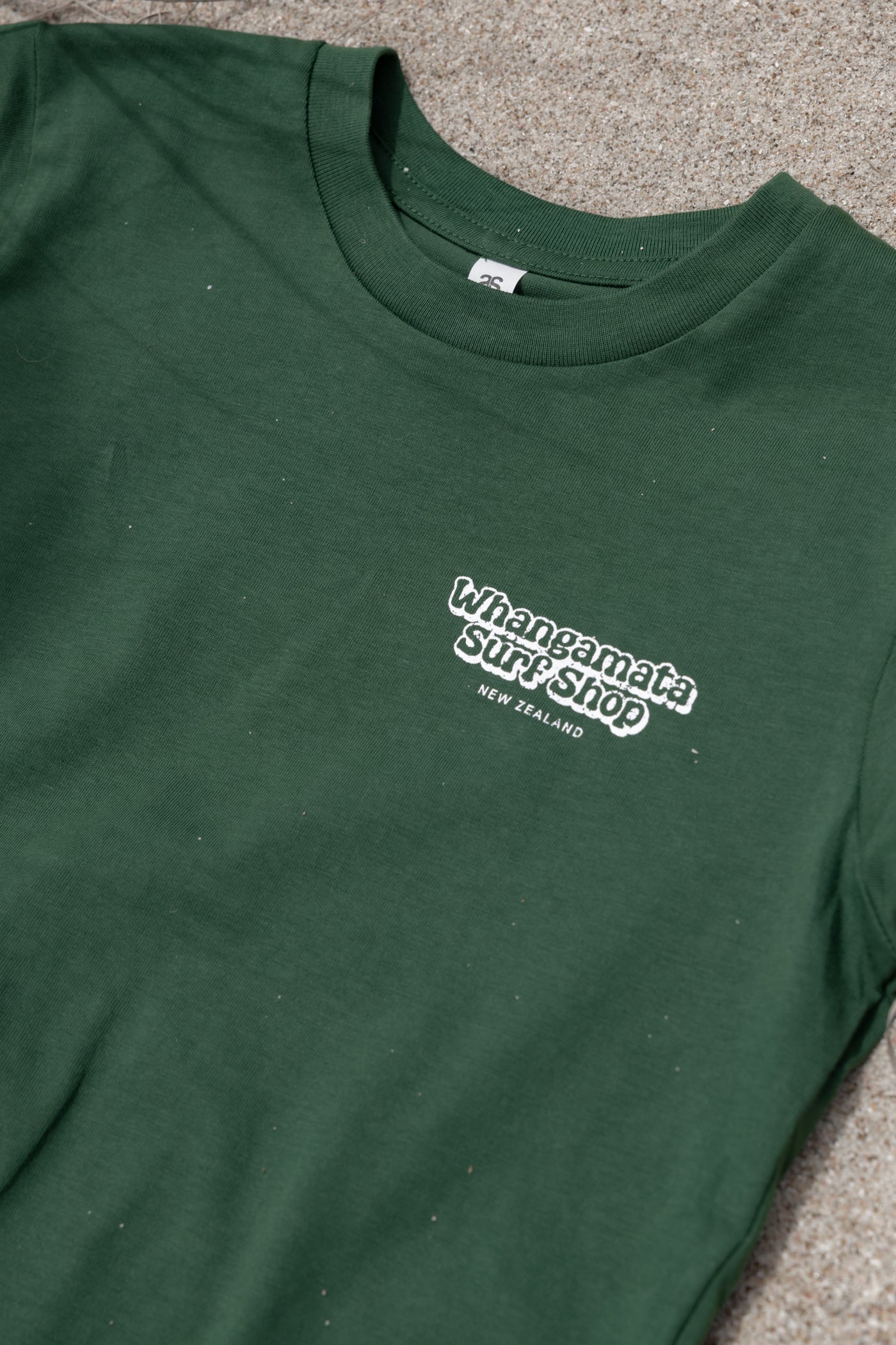 WHANGAMATA SURF SHOP KIDS BUBBLE LOGO TEE - FOREST GREEN
