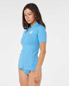 Introducing the Premium Surf Zip Through Short Sleeve Rash Vest, a must-have for sun protection and style. With its reversed front zip and ergonomic zip pull, this rash vest offers easy on and off convenience. Plus, the UPF 50+UV sun protection and printed logo make it a reliable and easy choice for your next surf session.