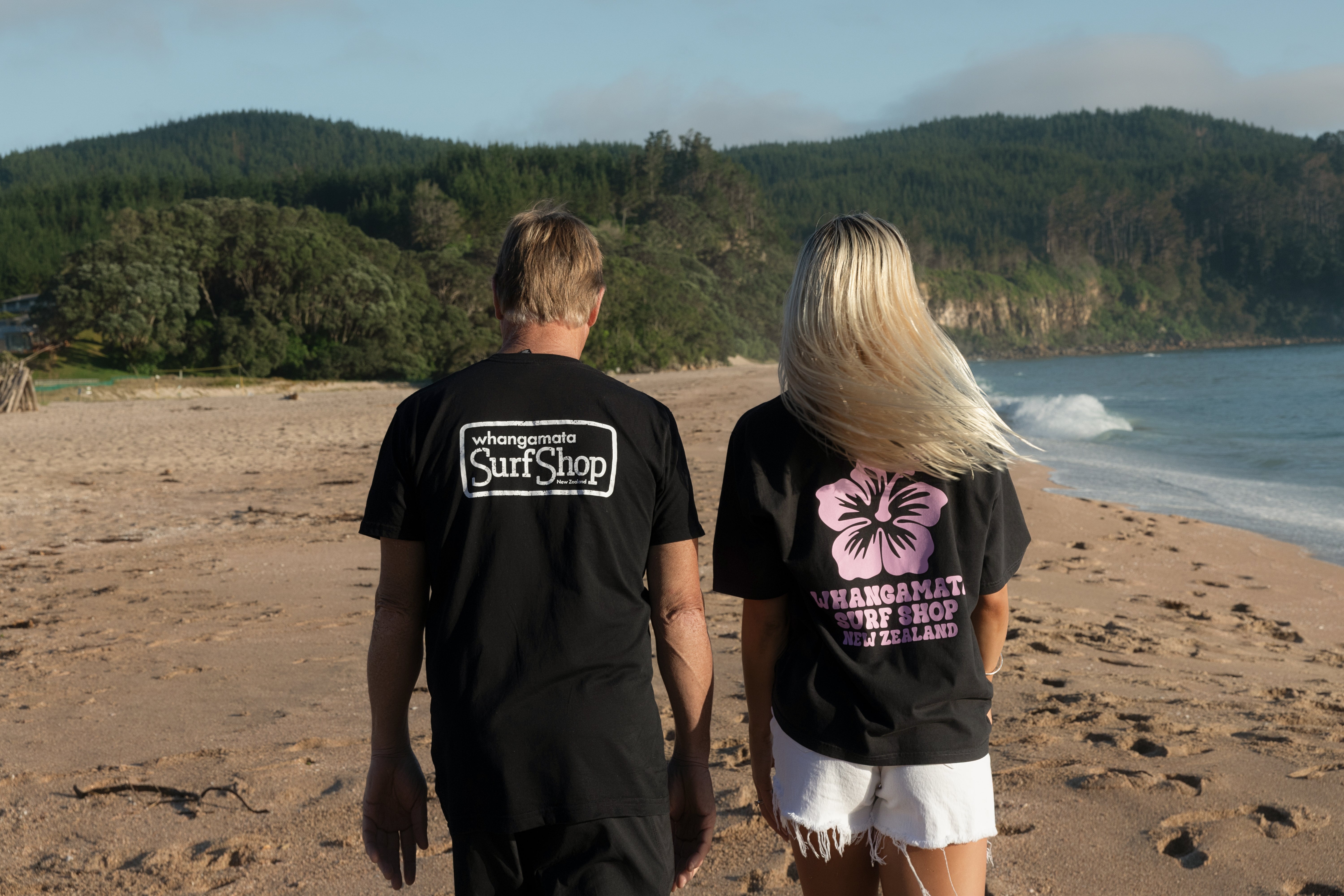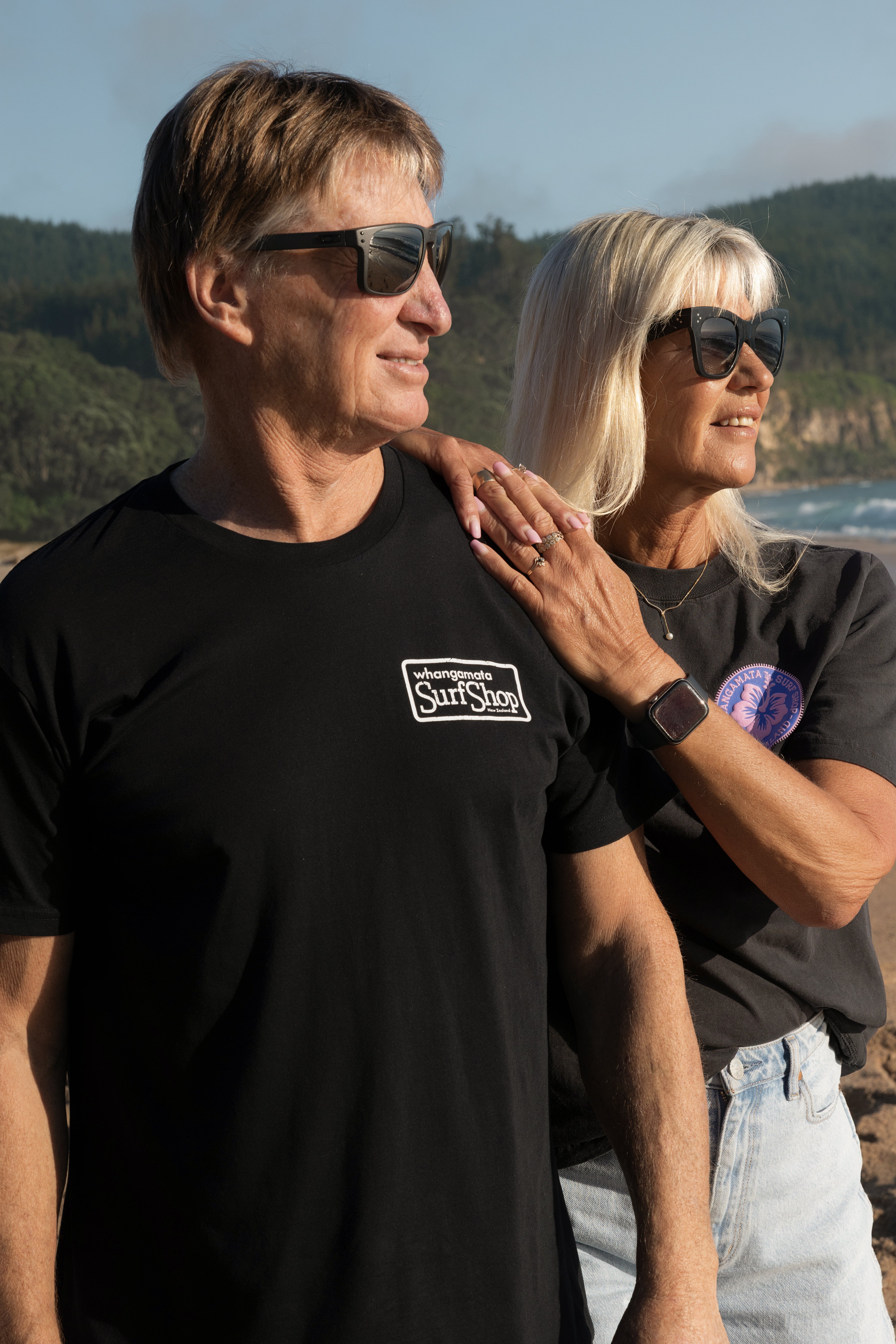 WHANGAMATA SURF SHOP BOX LOGO TEE - BLACK