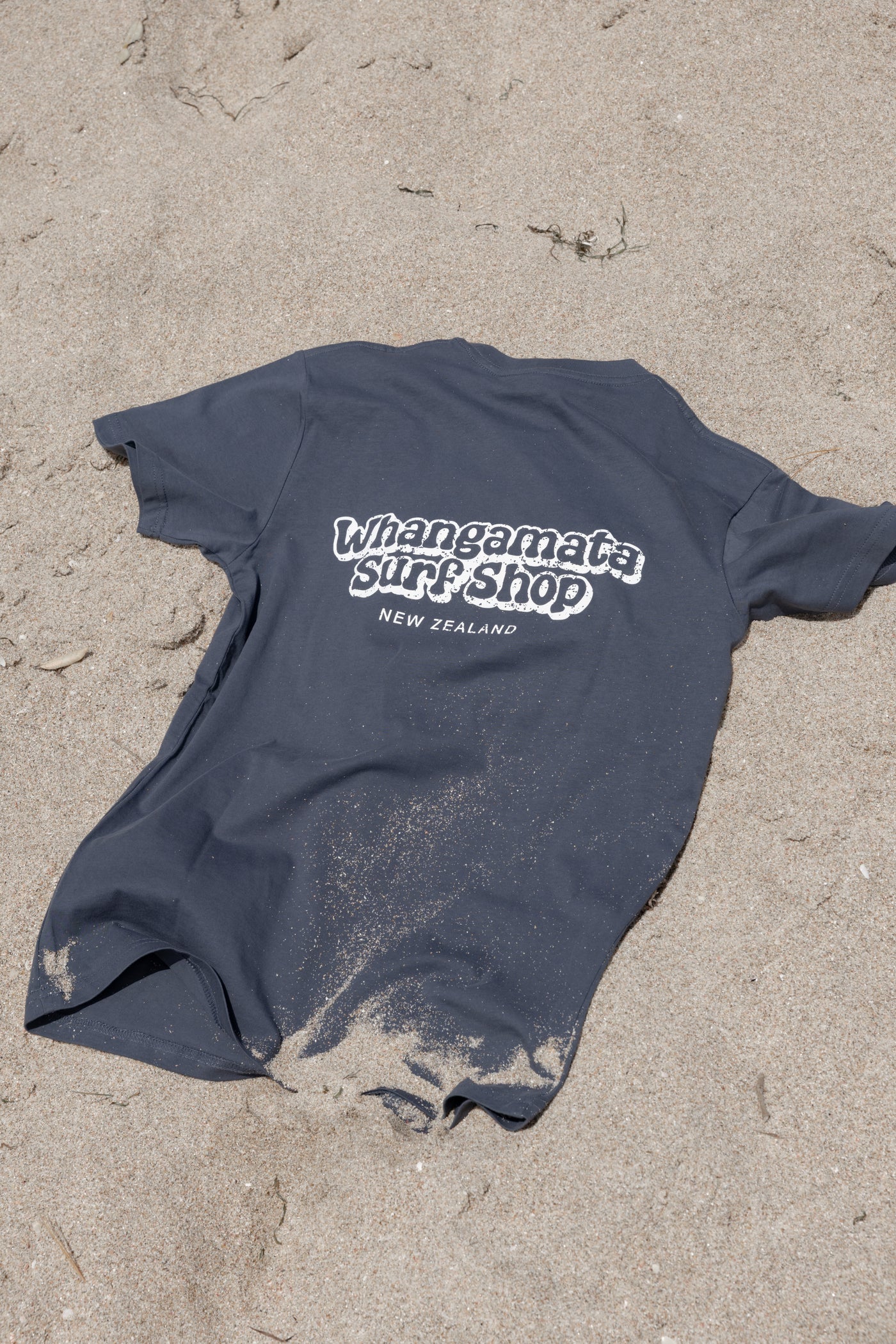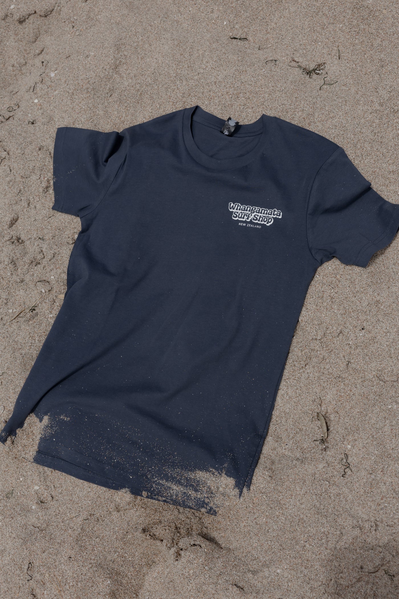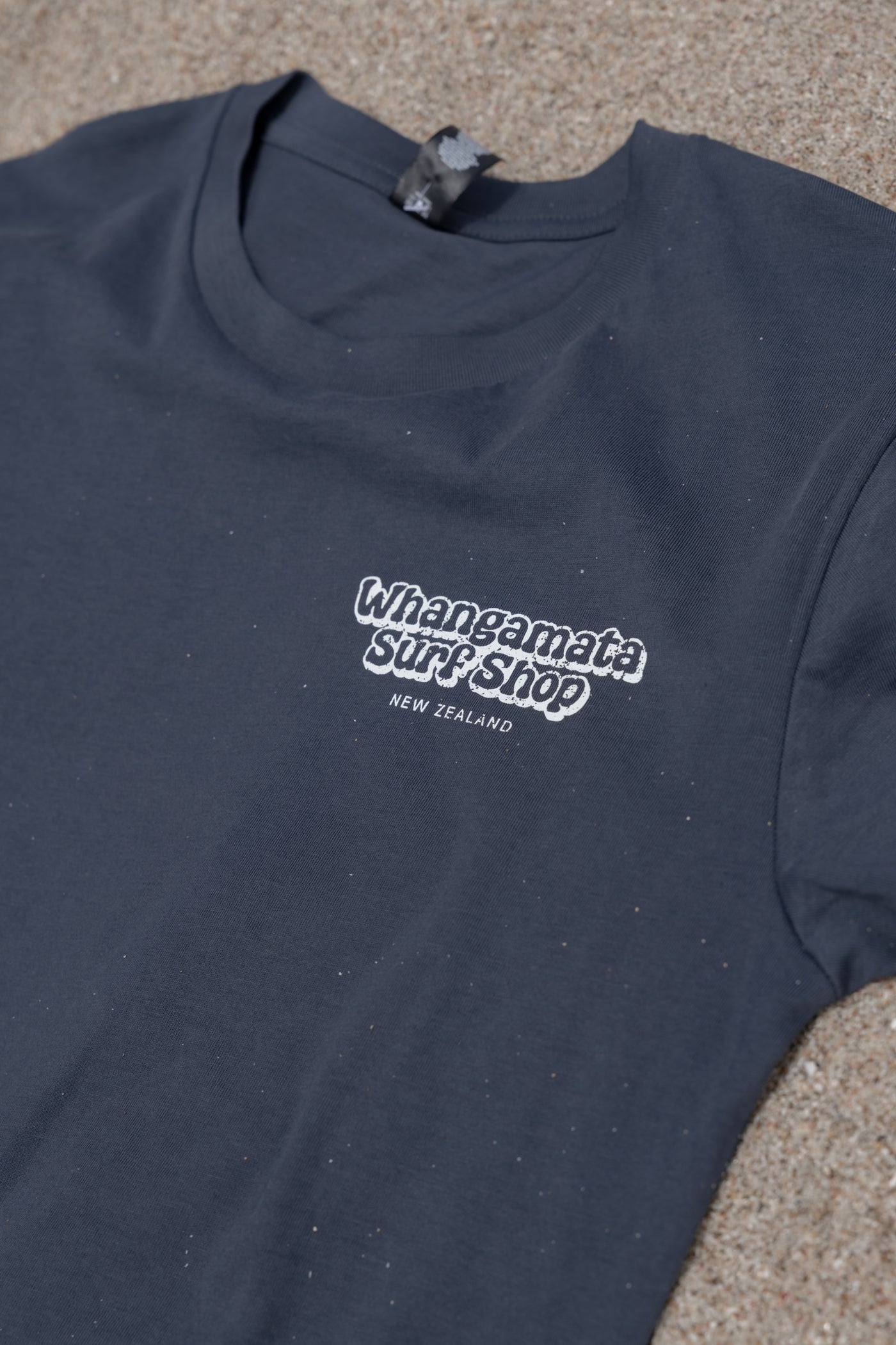 WHANGAMATA SURF SHOP BUBBLE LOGO TEE - PETROL BLUE