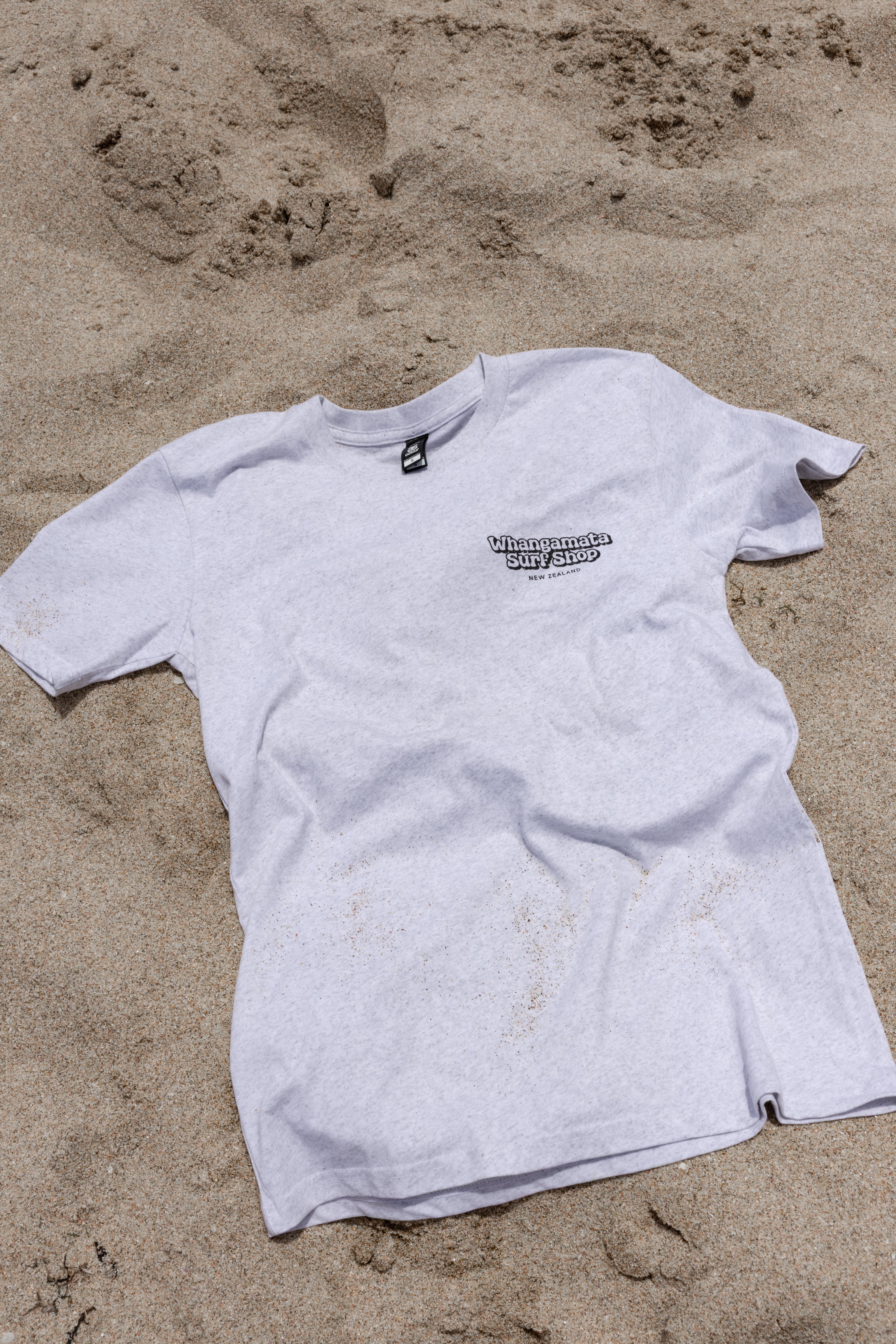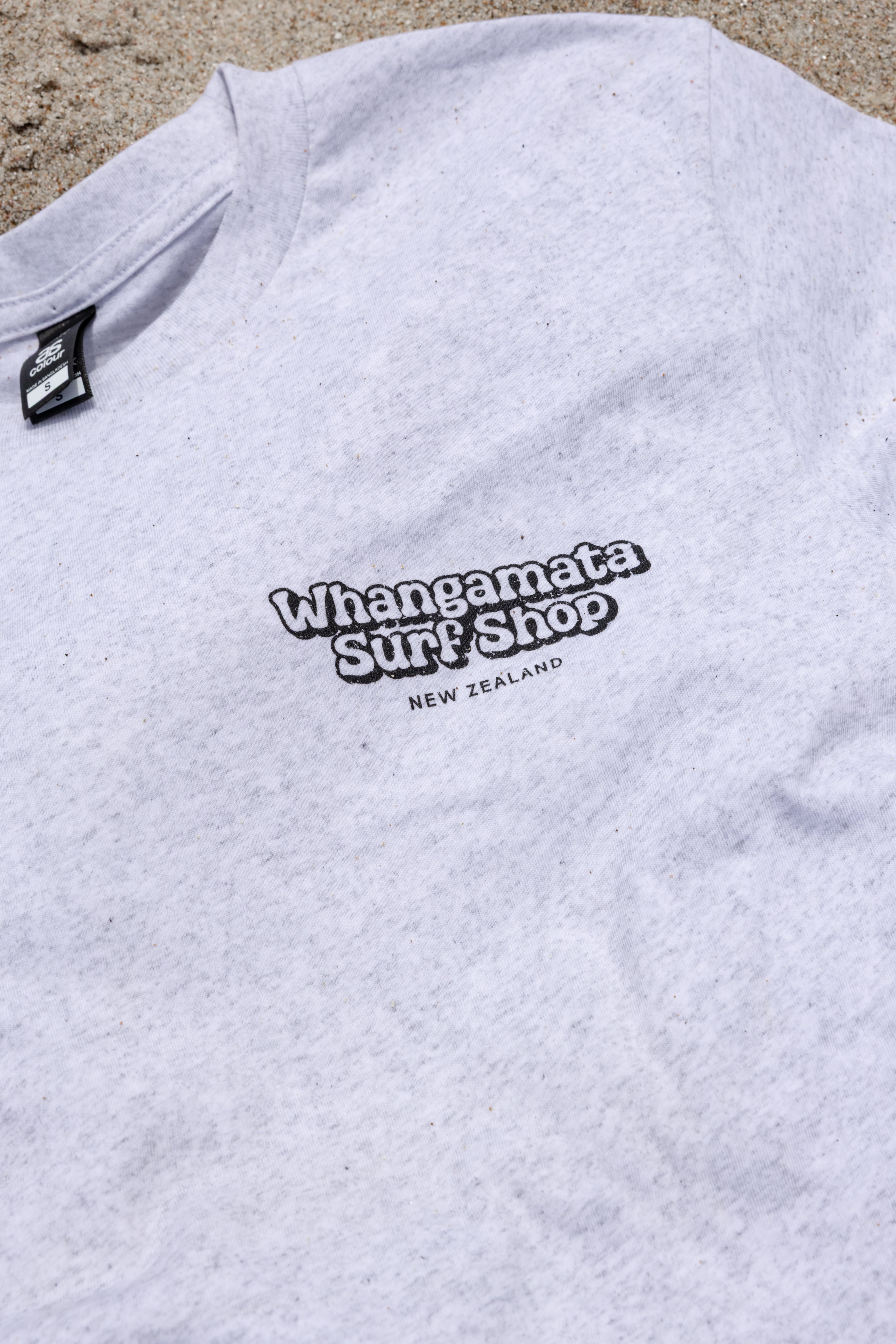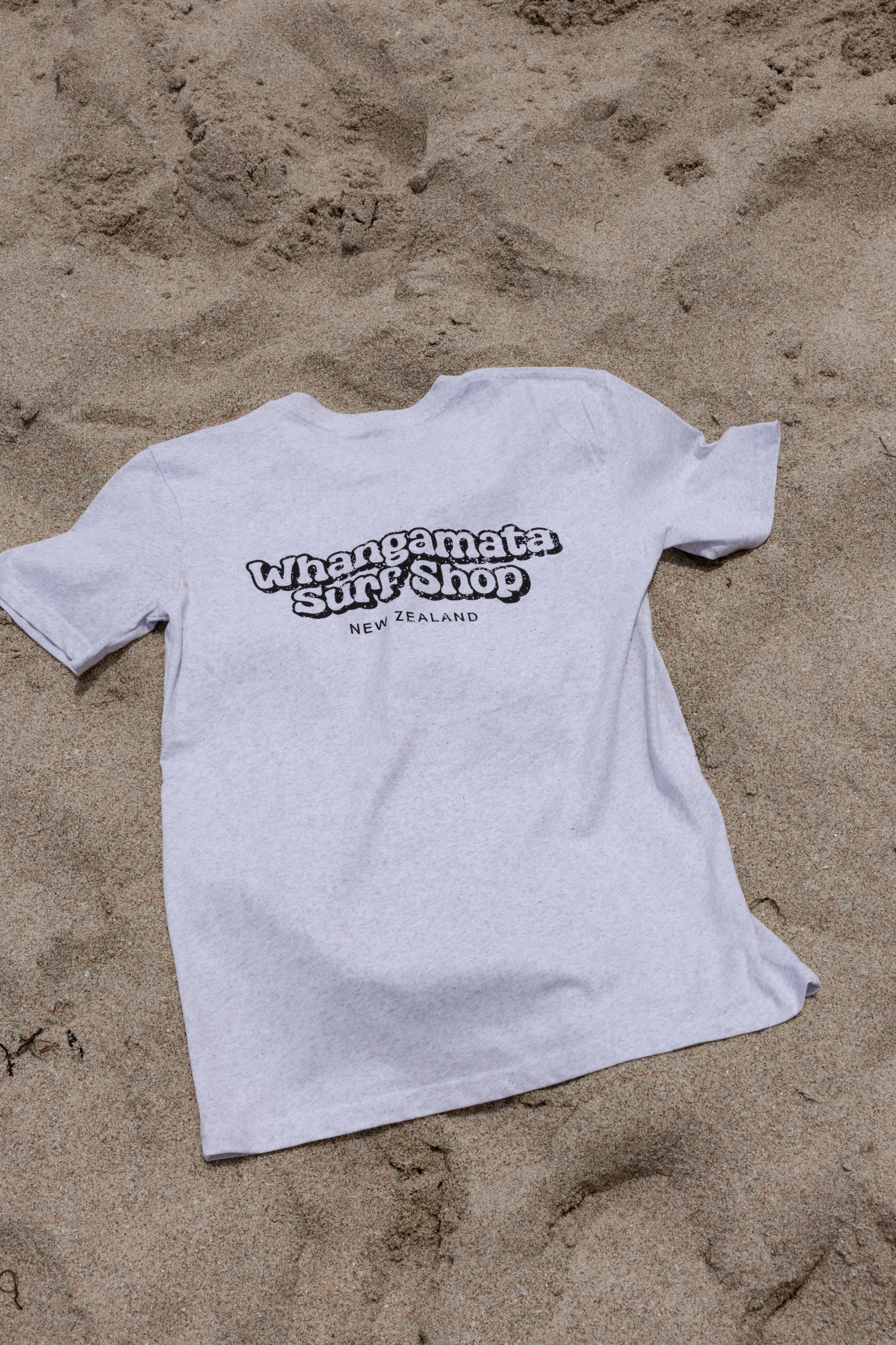 WHANGAMATA SURF SHOP BUBBLE LOGO TEE - WHITE MARLE