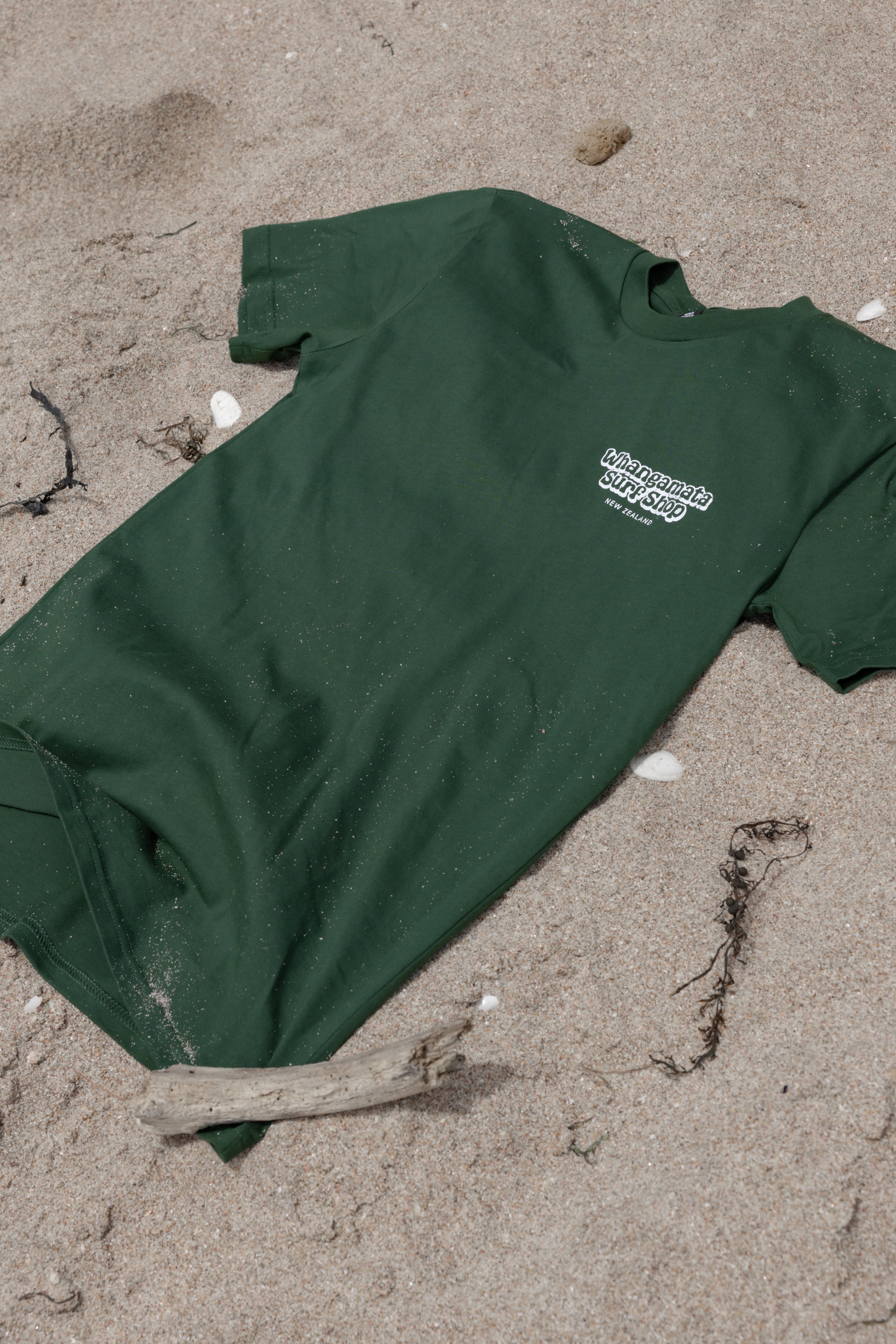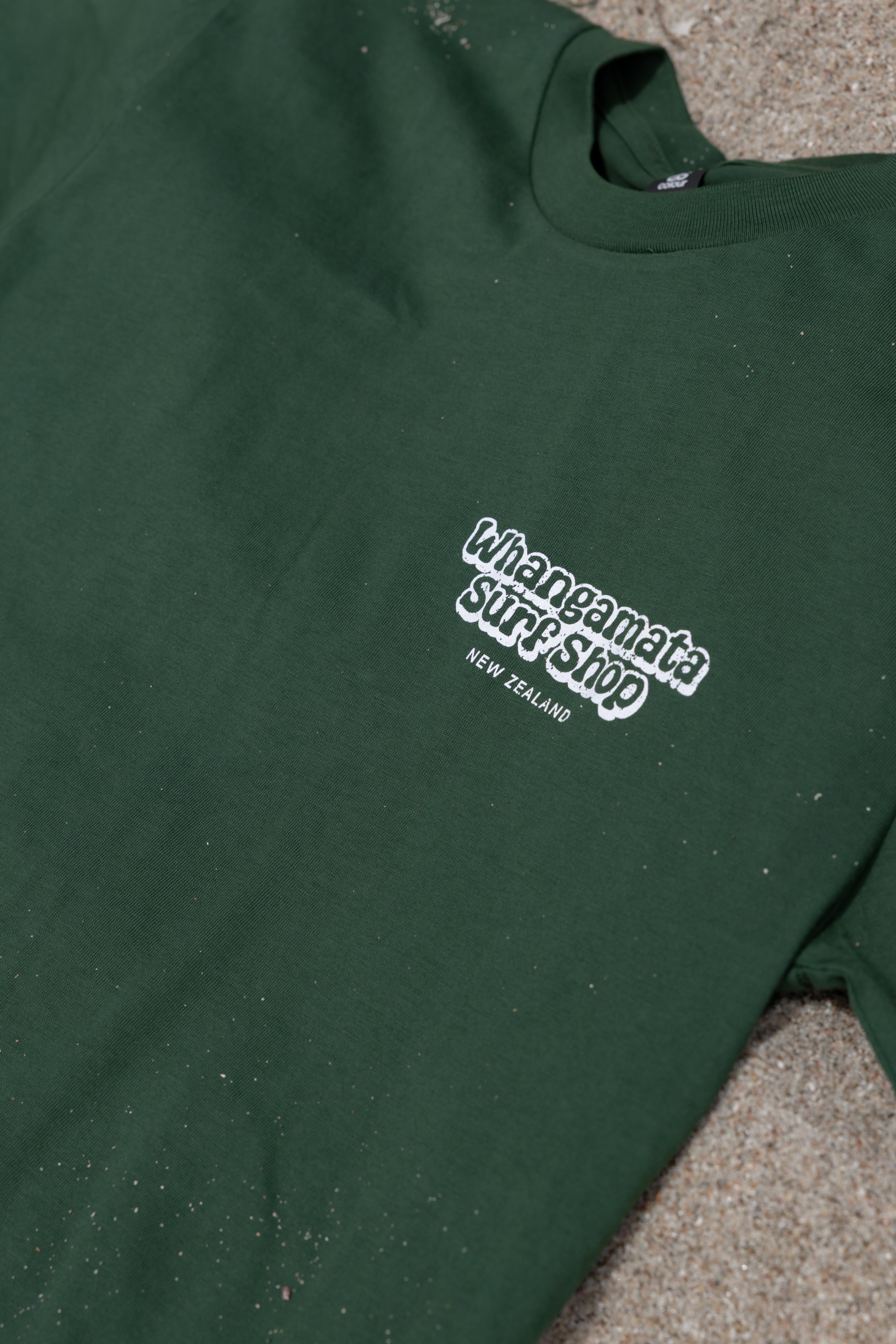 WHANGAMATA SURF SHOP MENS BUBBLE LOGO TEE - FOREST GREEN