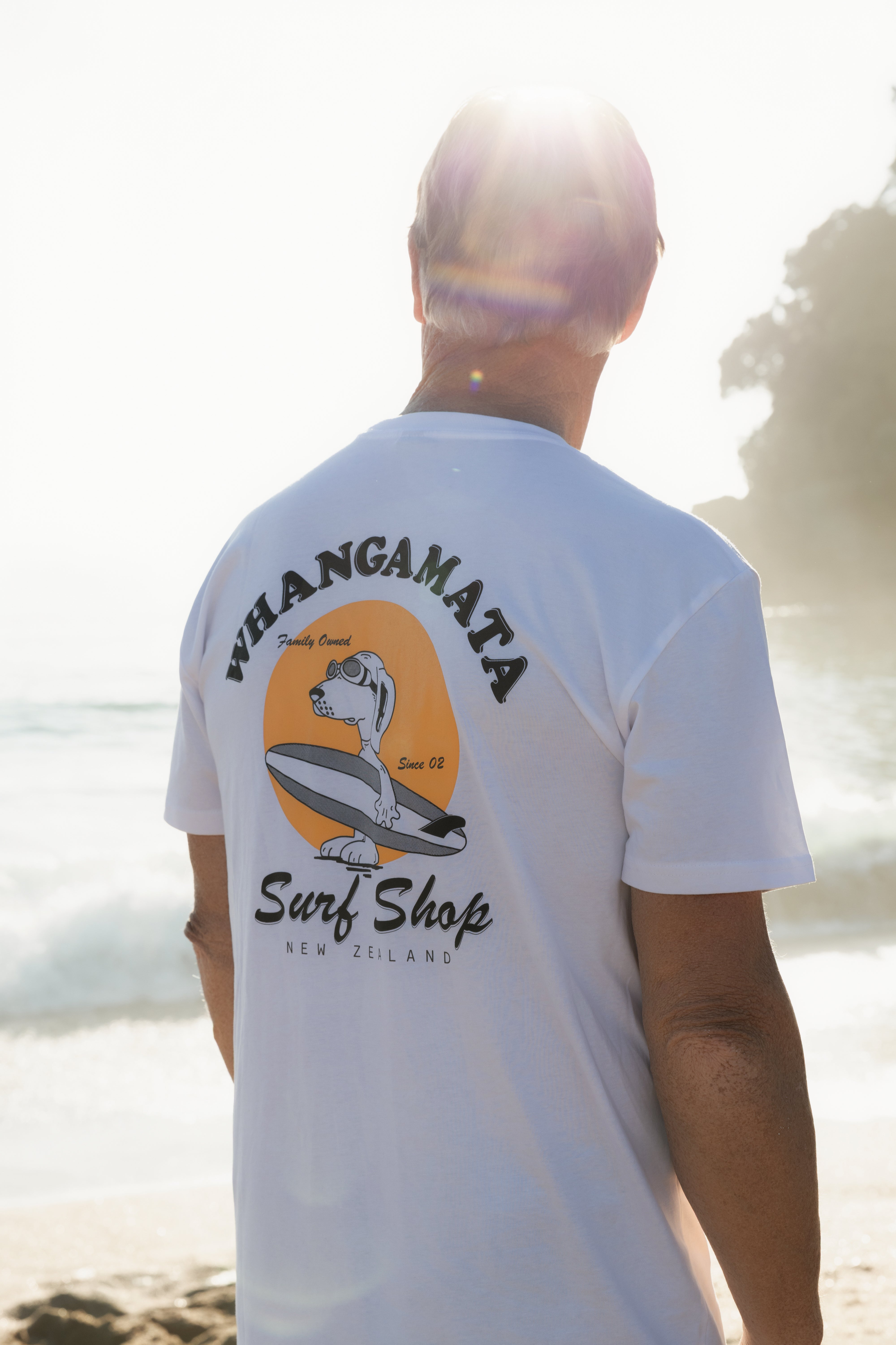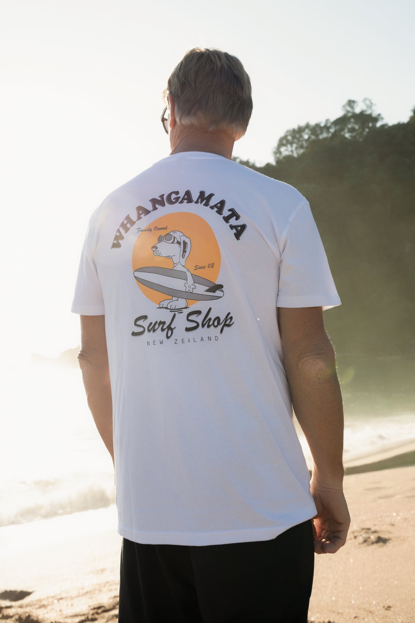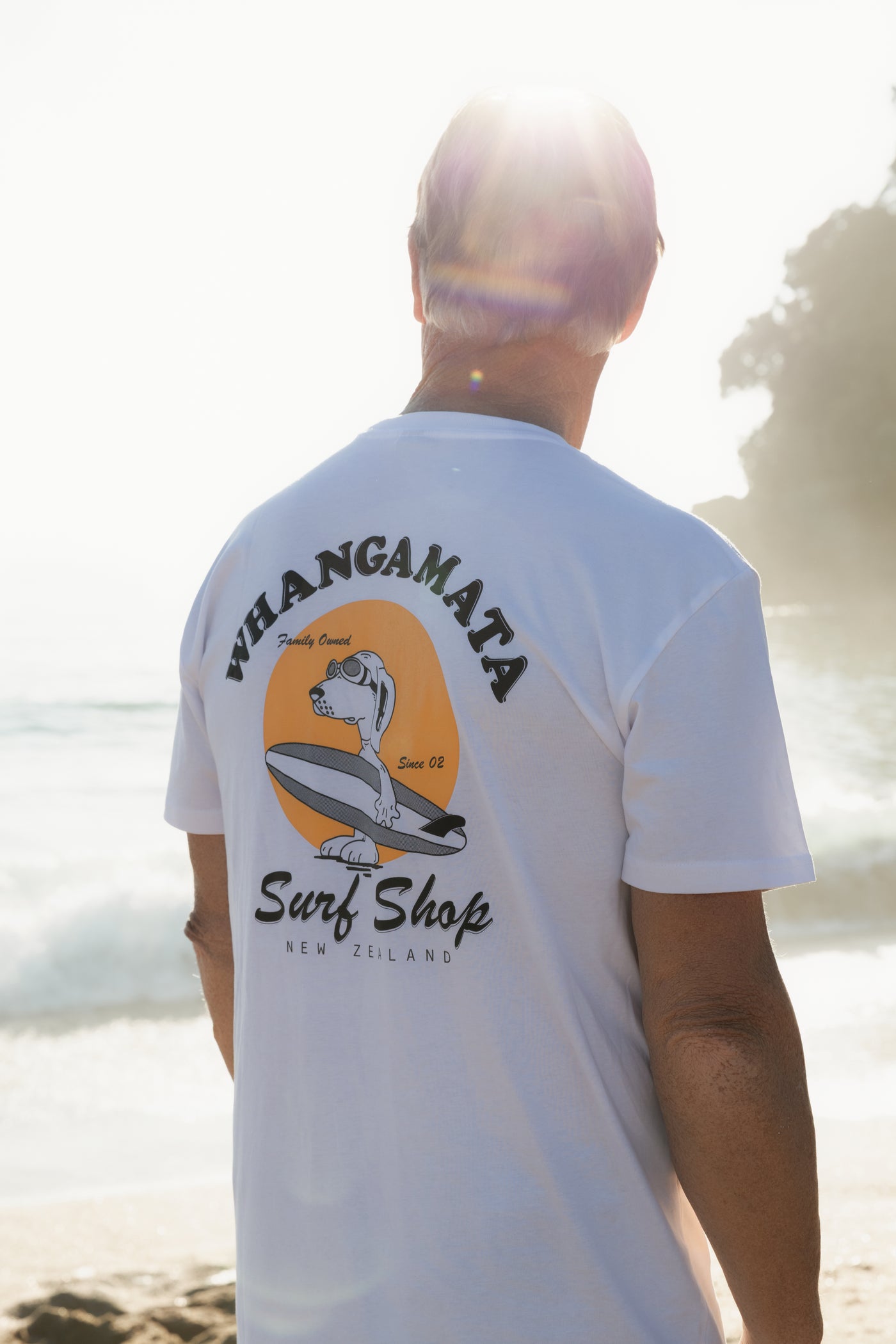 WHANGAMATA SURF SHOP MENS SURF DOG TEE - WHITE