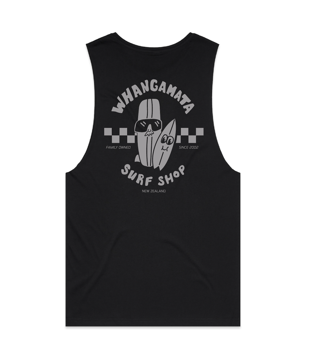 WHANGAMATA SURF SHOP SURF DUDES SINGLET - BLACK