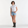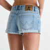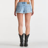 Our Low Bella Short is the ultimate summer short, featuring a low rise, slim fit. Straight from the archives, this mini short is a Western inspired dream. Designed with a fitted top block, and slim through the leg. Made in a vintage inspired, rigid denim with a light blue wash.